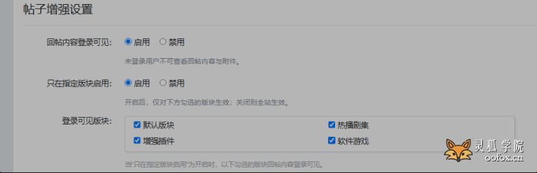 增加回帖查看方式、回复中添加楼主标识、首页板块列表自定义、@用户提醒、列表显示浏览量、首页列表前显示板块名称、列表今日发帖时间高亮及列表帖子后添加分页。添加支持回帖登陆可见设置。